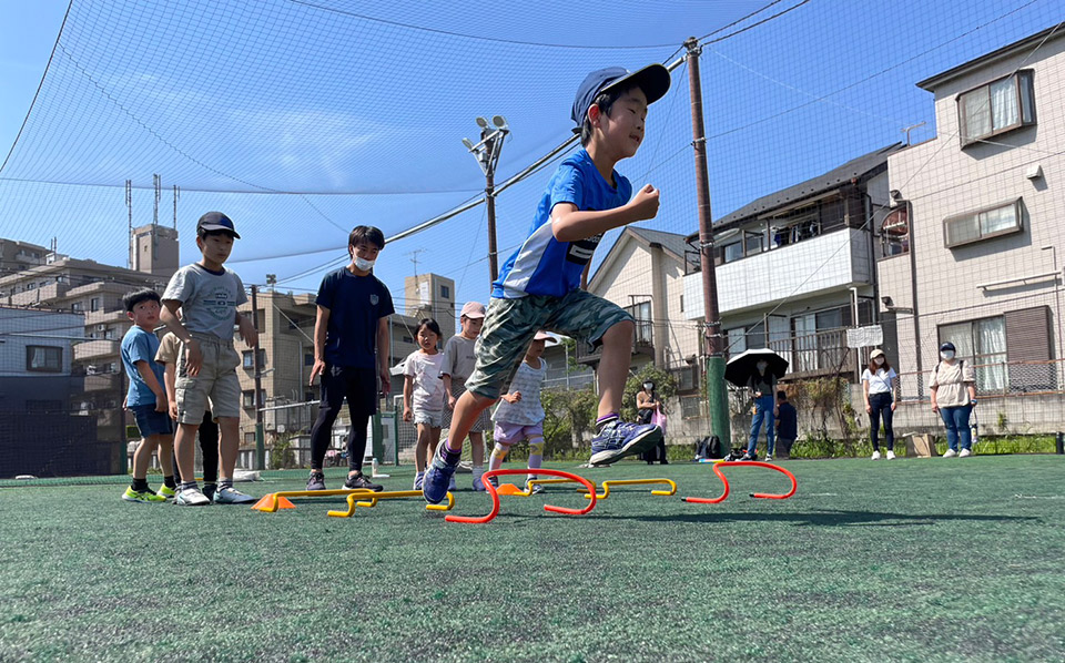 かけっこに繋がる、「足の運び方」、「腕の振り方」、「姿勢」、「スタート」など要点を教えて進めていきます。また、走るだけでなく様々な種類の運動刺激やコーディネーションのプログラムを行うことで走るスピードにも繋がっていきますので、楽しく夢中になれる内容を盛り込んで進めていきます。